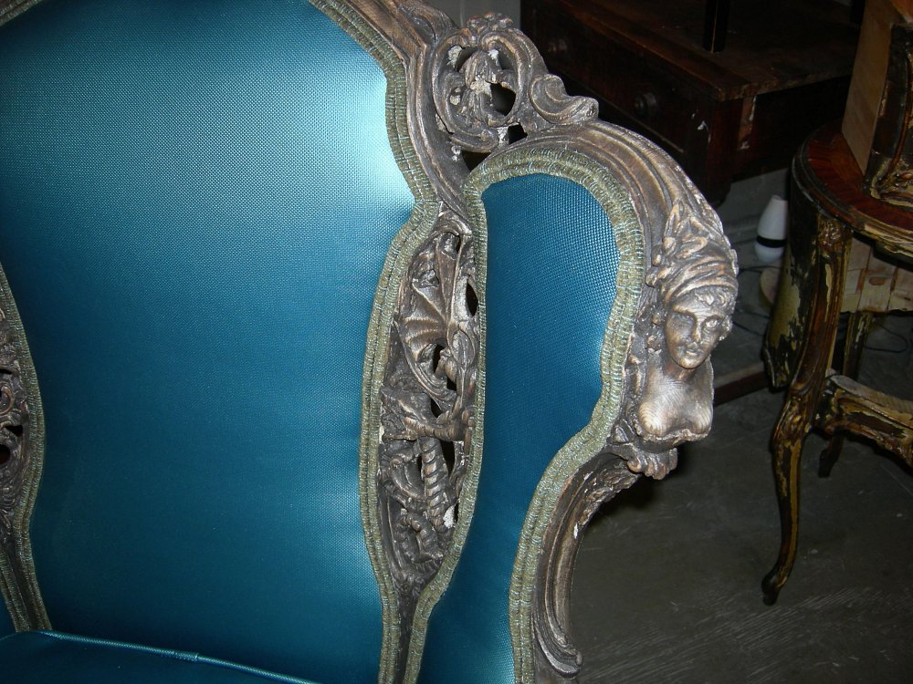 French Salon Chairs - Pair - Restored for ClientRestored for client. French style, newly constructed. Stained wood, sealed. Washed with umber gesso. Sealed surface then waxed and butted. Applied additional support pieces, arms and legs.