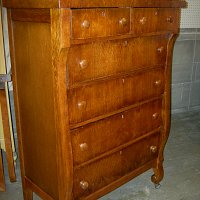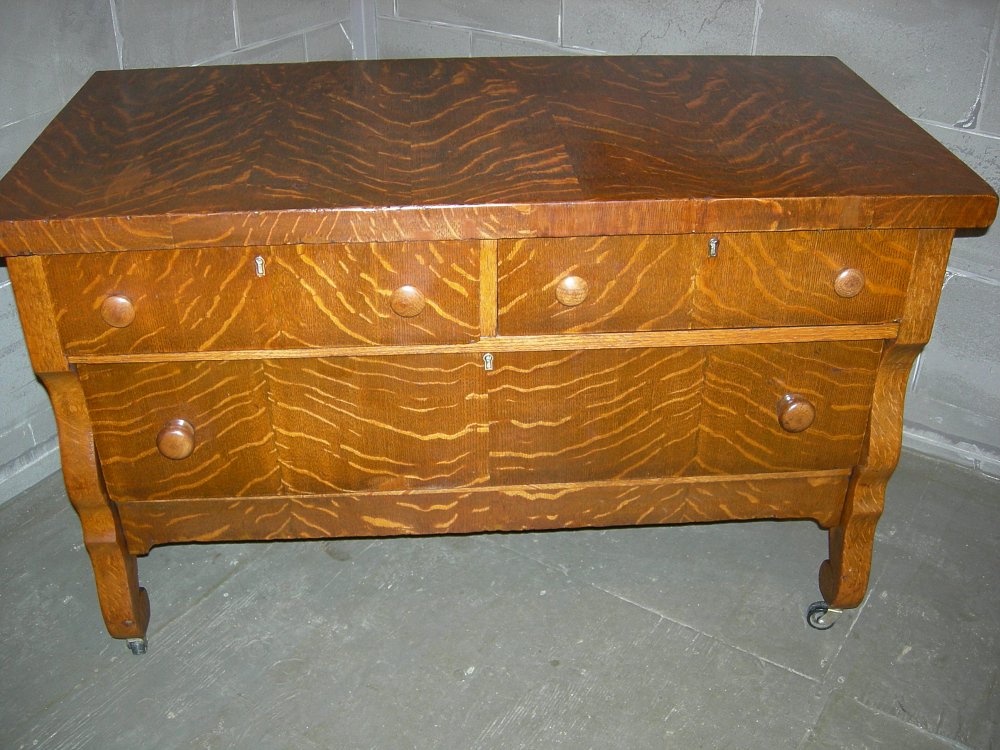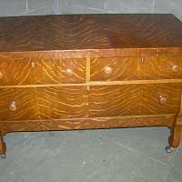 Low boy - Restored for ClientVeneer missing on top, sides bleached from sunlight. Replaced quarter side oak veneer where needed. Re-glued drawers, replaced rails. Applied finish to match original.